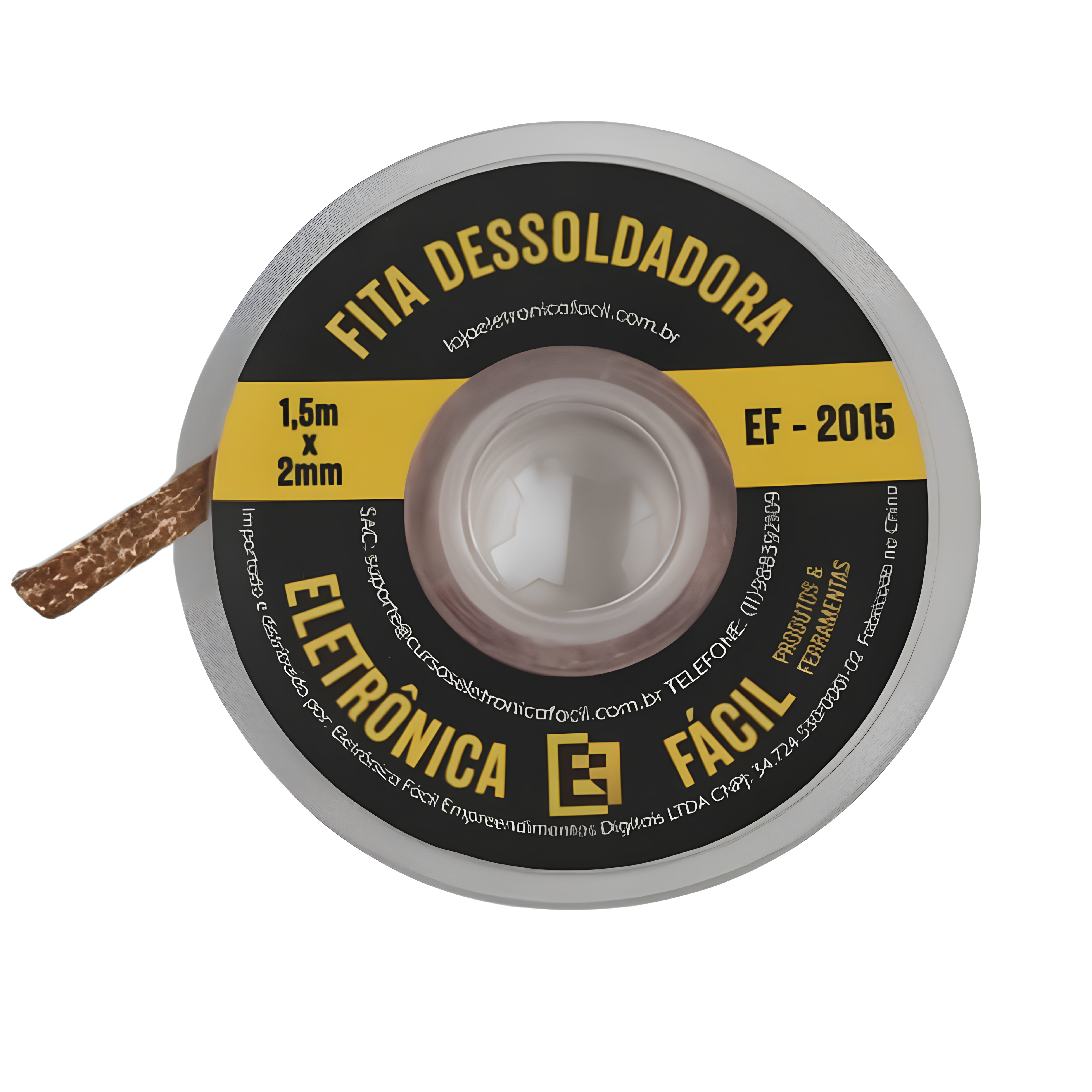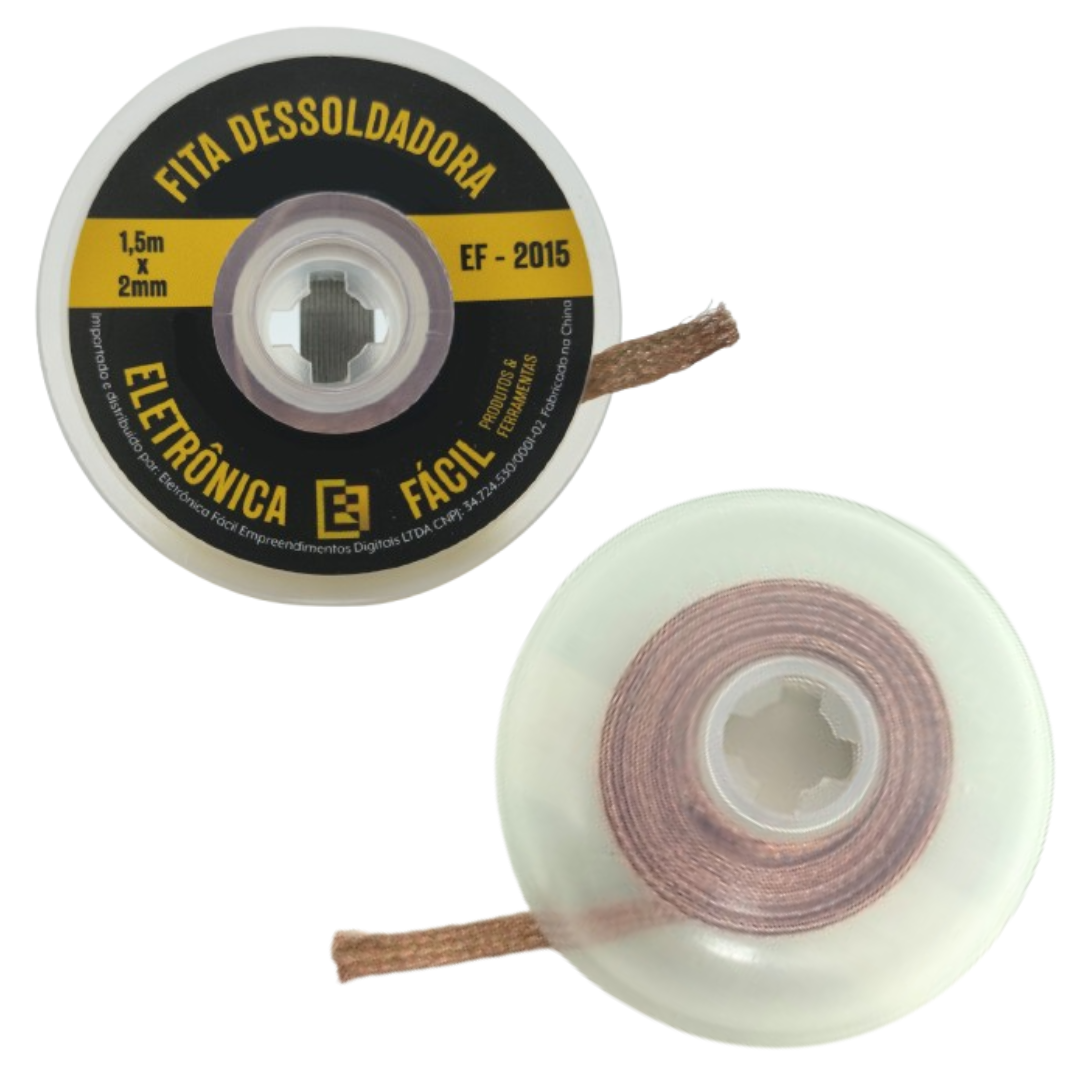 Fita Dessoldadora 1,5mx2,0mm Esta fita dessoldadora foi especialmente desenvolvida para remover solda em furos, componentes e trilhas em Placas de Circuito Impresso. A fita dessoldadora é um item crucial para...