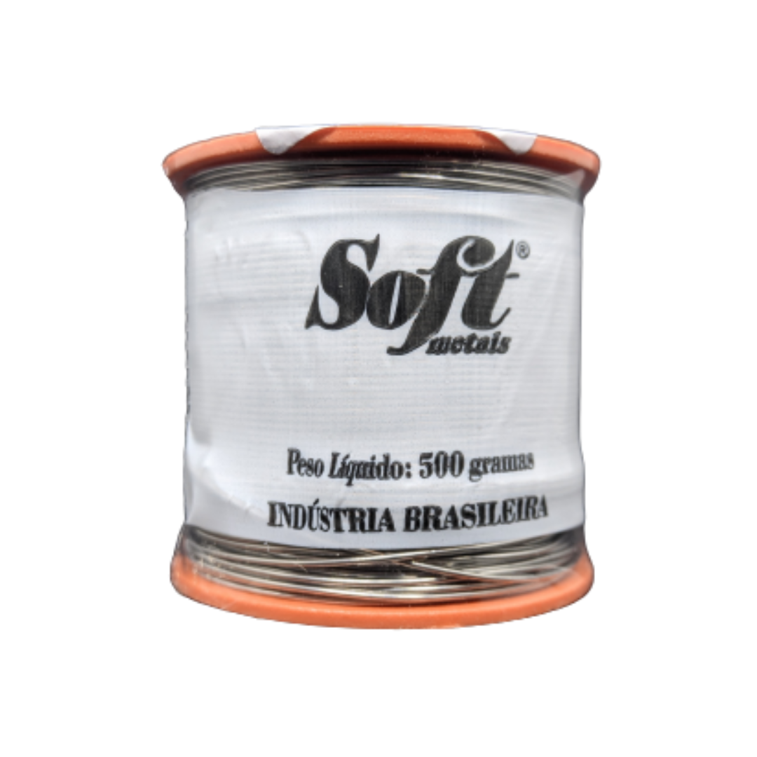 Carretel de solda 500g da SOFT fio 0,8mm 63X37   Nome comercial: Fio Resinoso Sn63 X Pb37 de 0,8mm Peso: 500g Validade: 24 meses Marca: SOFT Metais Apresentação: Carretel Laranja...