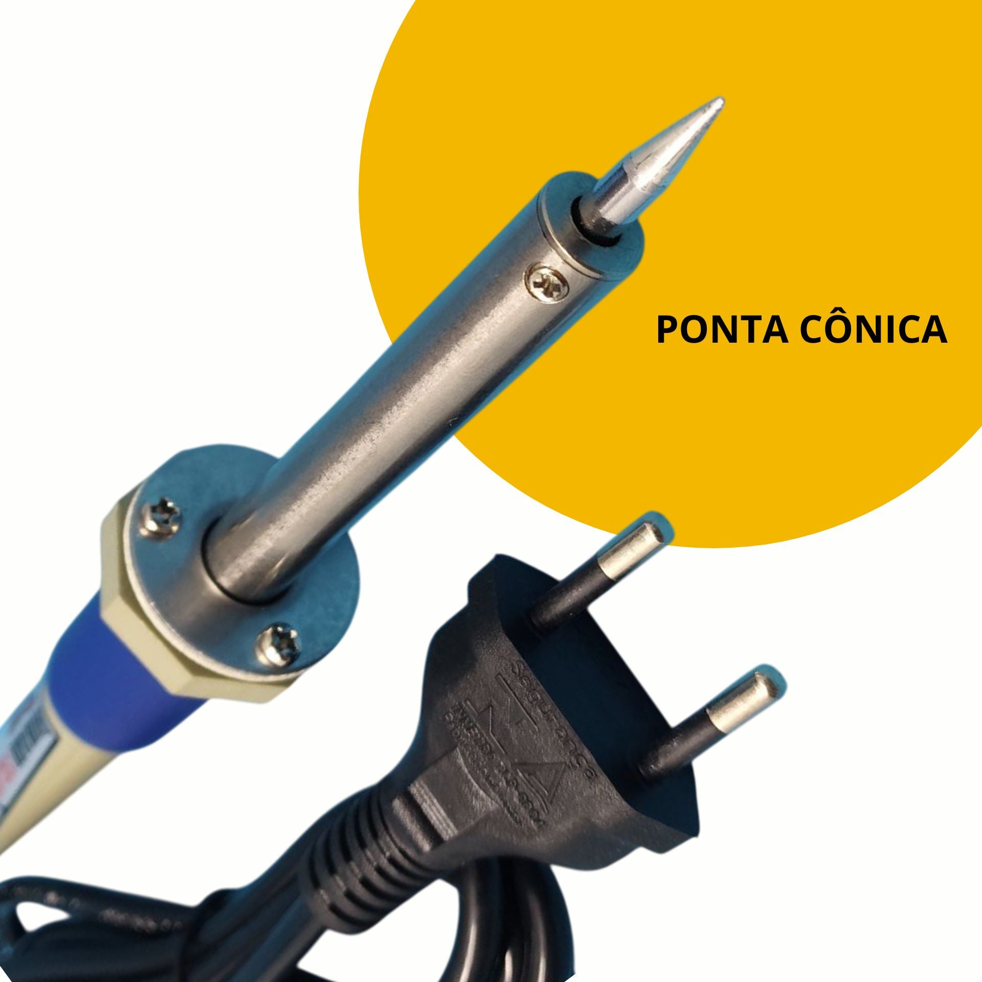 Kit com 2 pontas para reposição de ferro de solda sendo 1 unidade cônica e 1 unidade fenda Ponteira para ferro de solda até 40w. Especificações técnicas: Compatível com ferros...