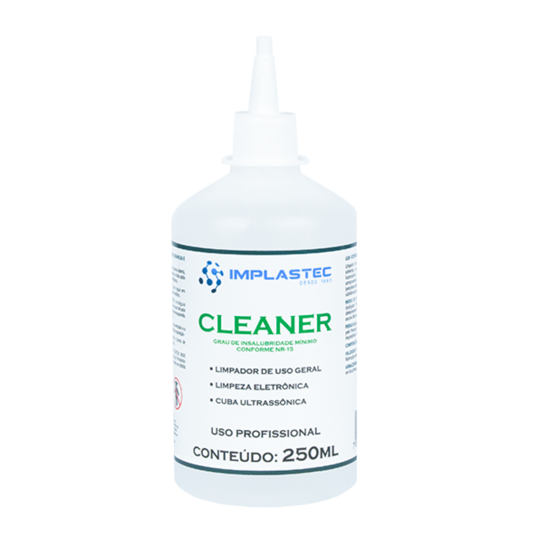 Cleaner Limpador Implastec 250ML O Cleaner promove a limpeza de substâncias orgânicas naturais ou sintéticas, tais como: resinas, óleos, gorduras,...