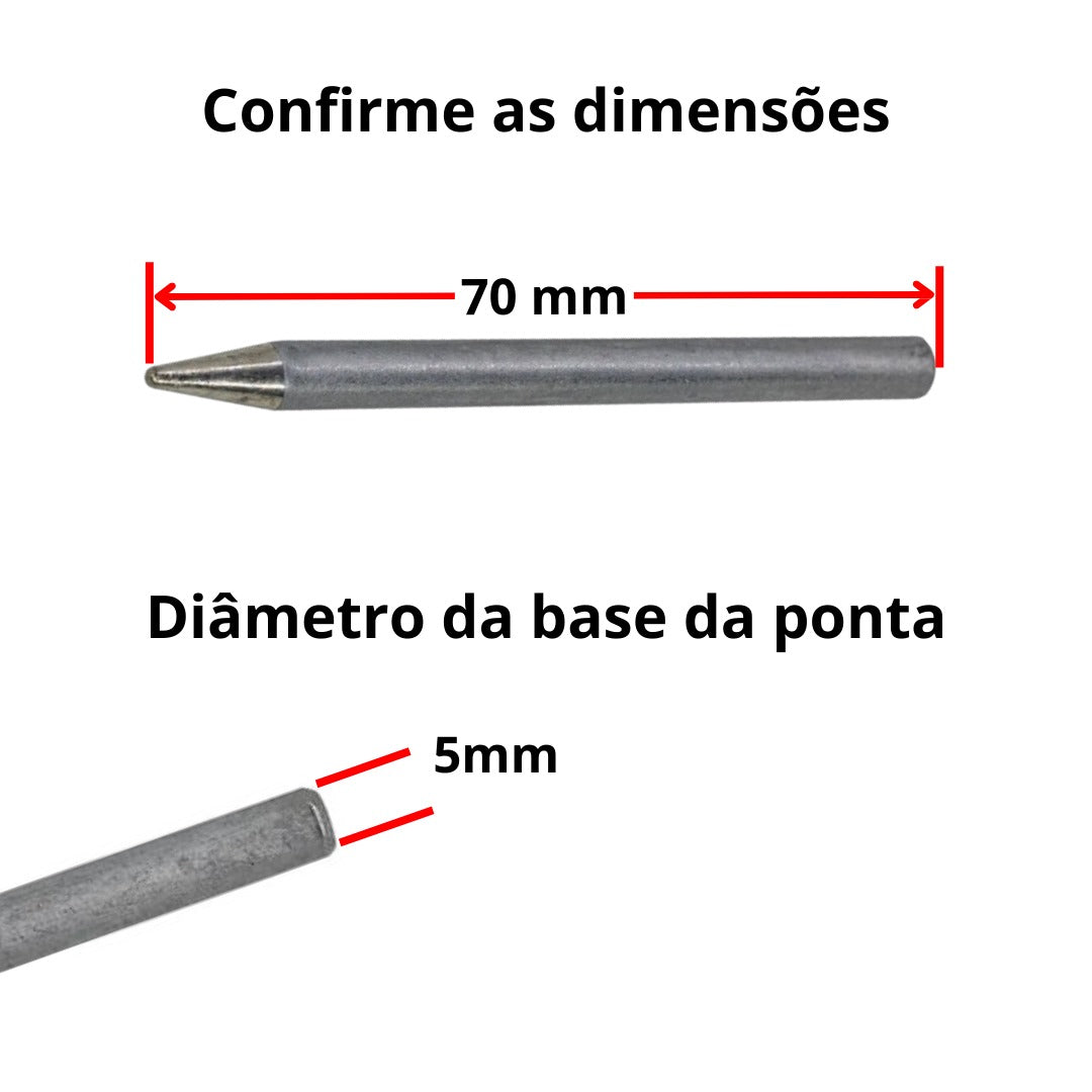 Ponta universal para ferro de solda diversas marcas Ponteira, tipo faca para ferro de solda até 40w. Medidas da ponta:Diâmetro...